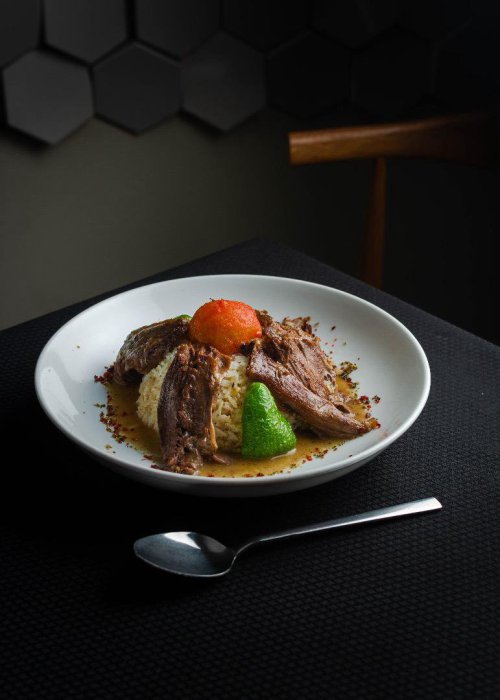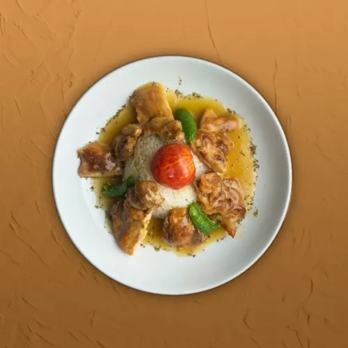 Tender lamb shoulder, slowly cooked to perfection. Served with rice, potato fries, and salad. Rich, traditional and deeply satisfying.