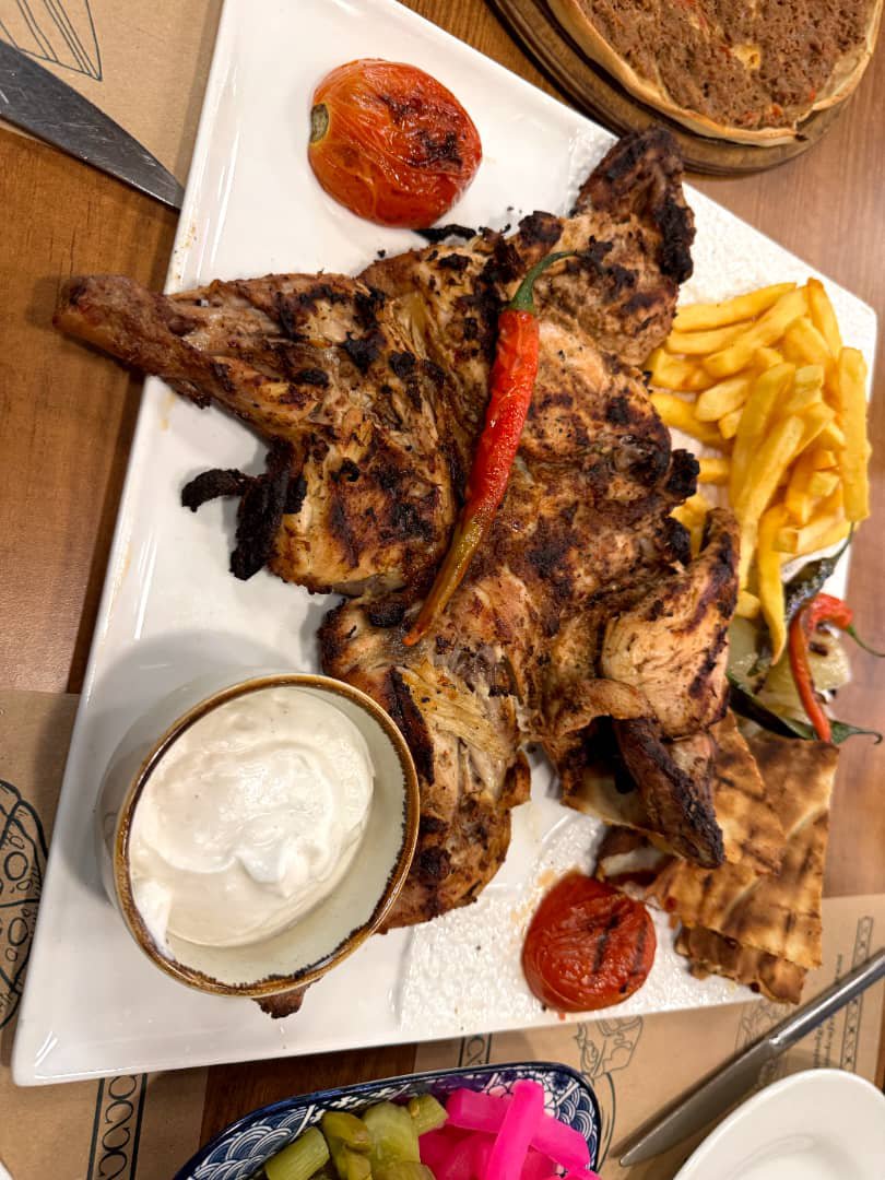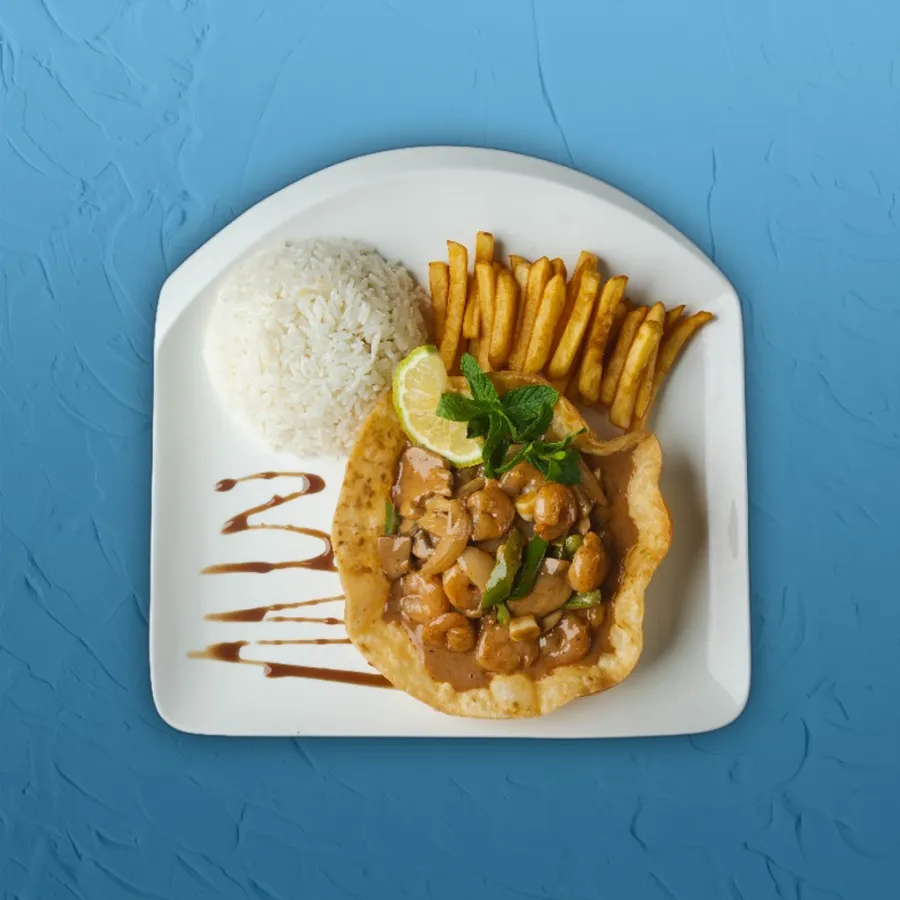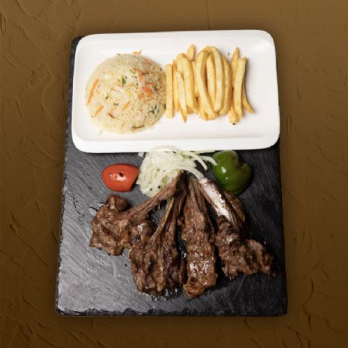 Tender lamb shoulder, slowly cooked to perfection. Served with rice, potato fries, and salad. Rich, traditional and deeply satisfying.